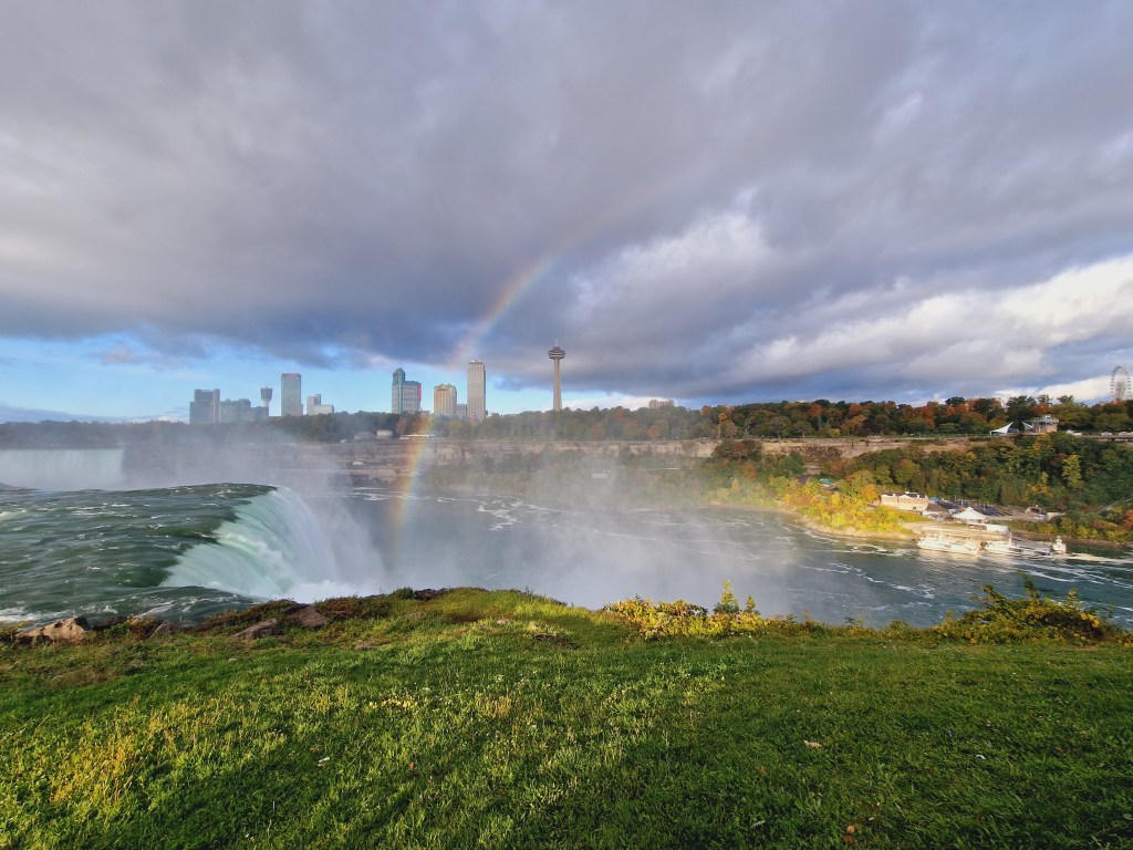 Et qui dit soleil et gouttes d’eau, dit fatalement Arc-en-ciel ! Oui on a eu le droit aux arcs-en-ciel. Du côté canadien comme du côté américain des chutes. Et le spectacle est sublime, comme on se l’imagine. Et si vous avez l’occasion d’y dormir, profitez aussi des projections de lumières la nuit !