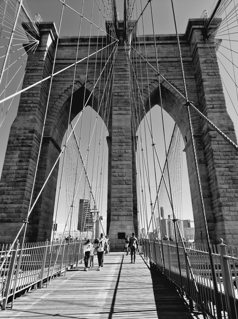 Nous sommes allés à la frontière sud-est pour voir le célèbre pont de Brooklyn que j’avais très envie de parcourir. Un aller et un retour plus tard, nous voici remplis de photos « couleur » et « noir et blanc ». Je suis fan de photos, et NY est propice aux photos en NB que je ne pratique pas souvent.